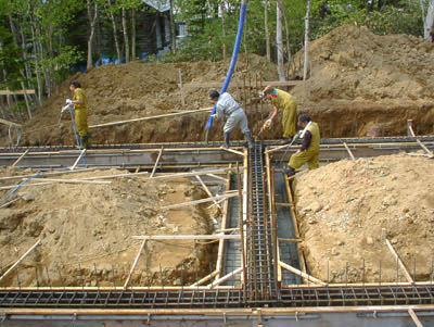 基礎部のコンクリート打設中。
