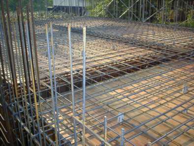 鉄筋は組み終わりました。これは1階の天井の様子です。
