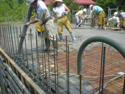 一階の天井のコンクリート流し込んでいます。