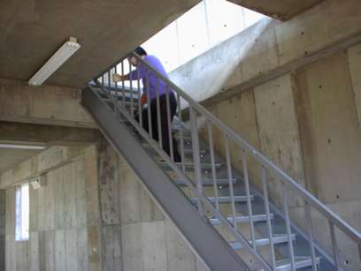 階段に手摺をとりつけています。